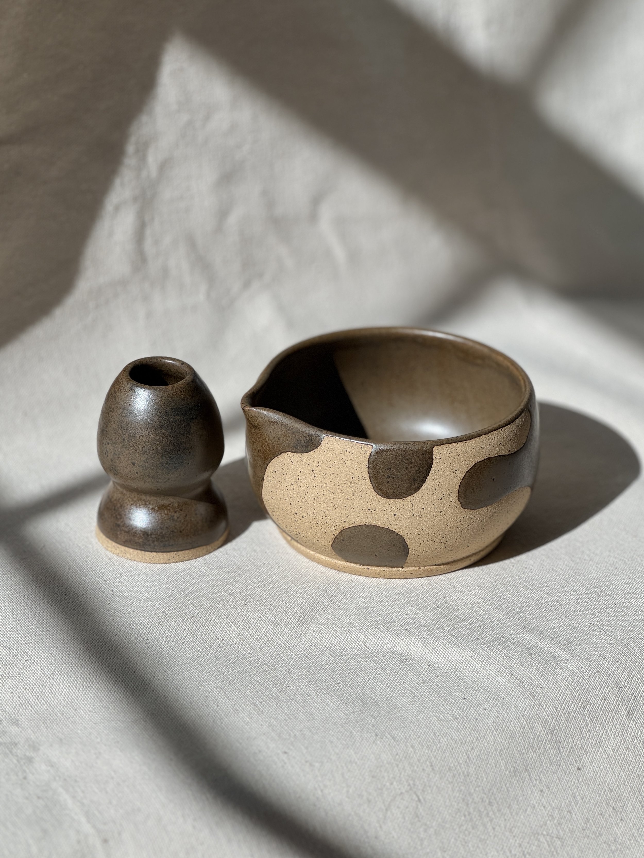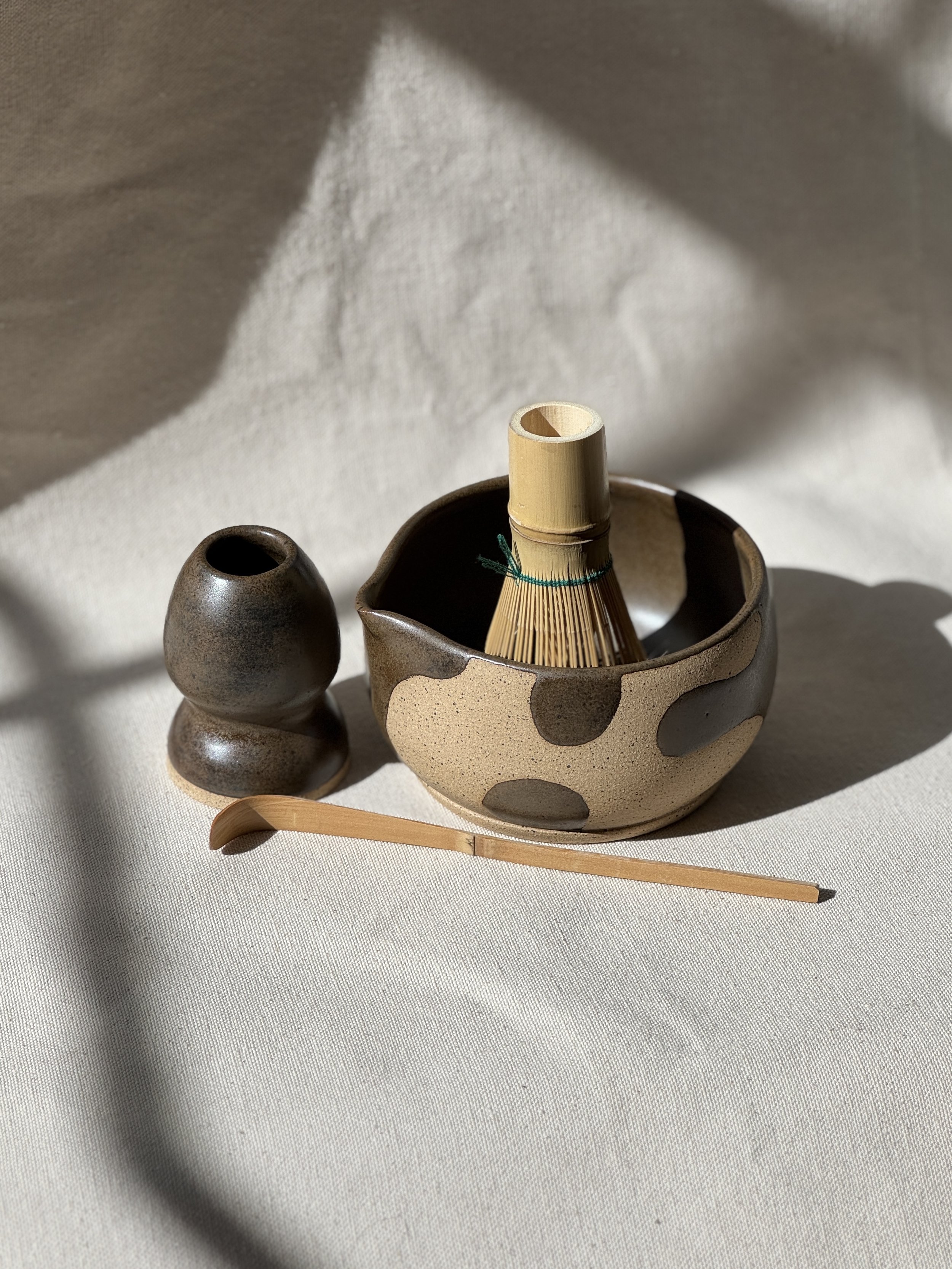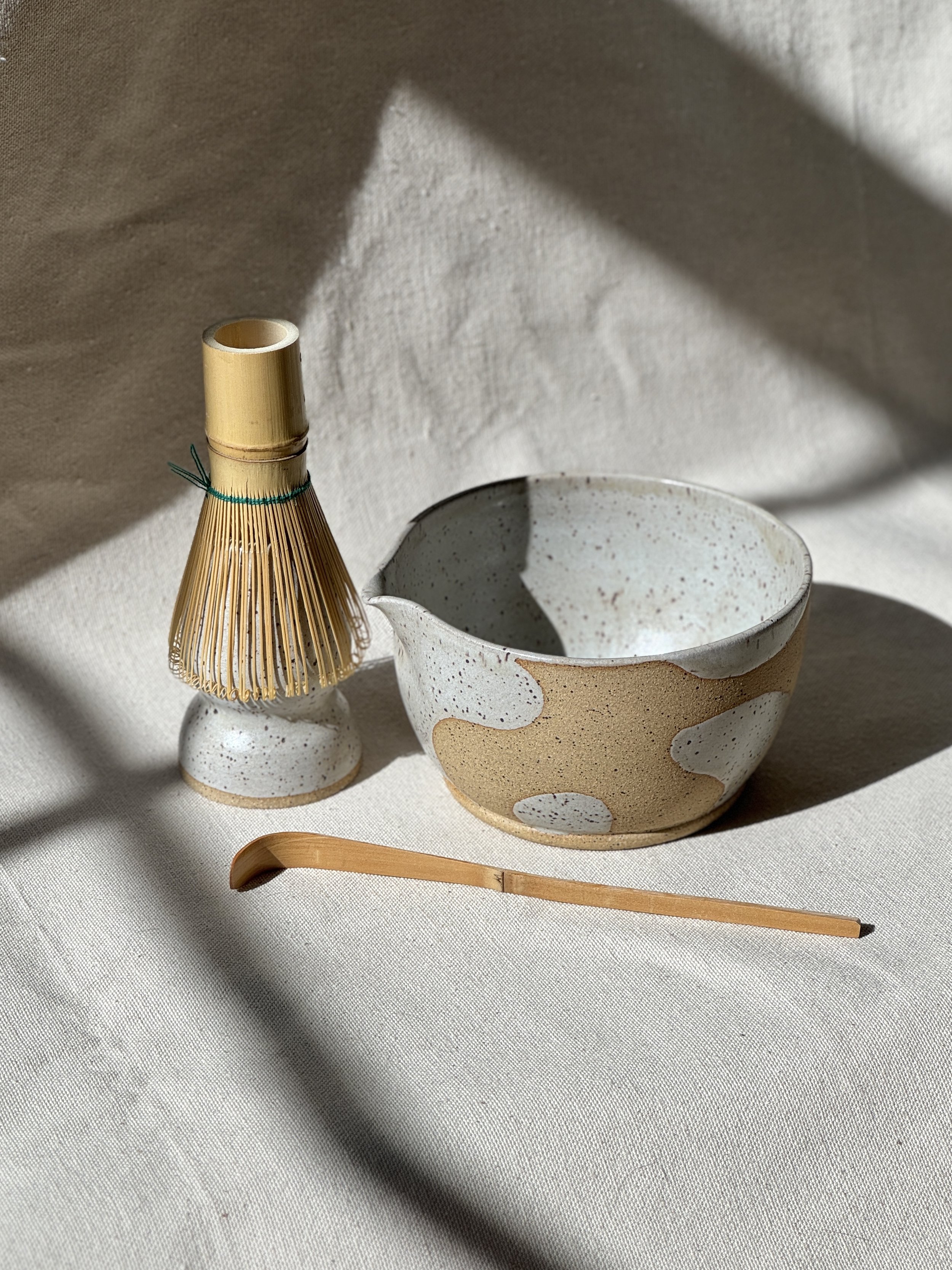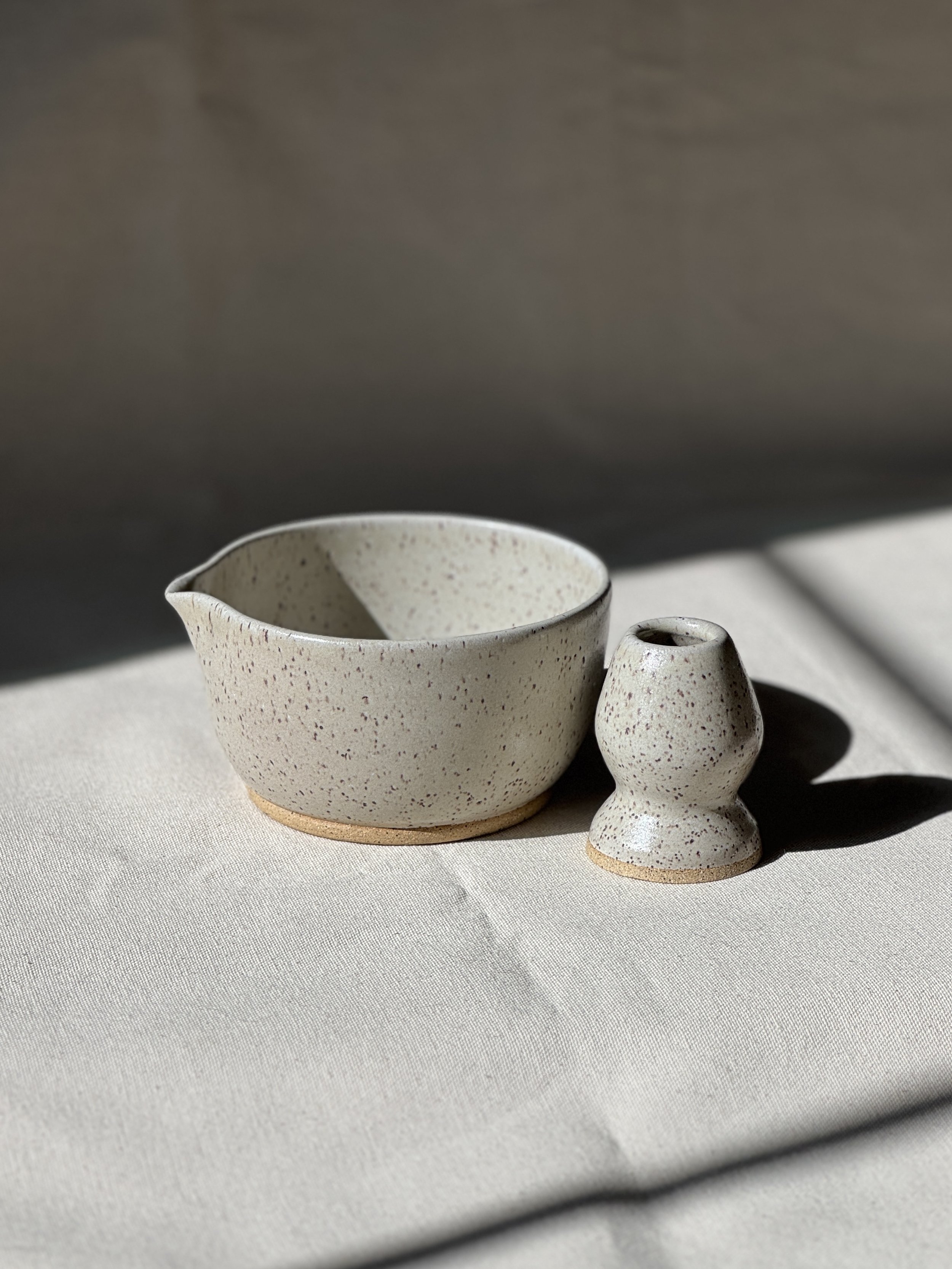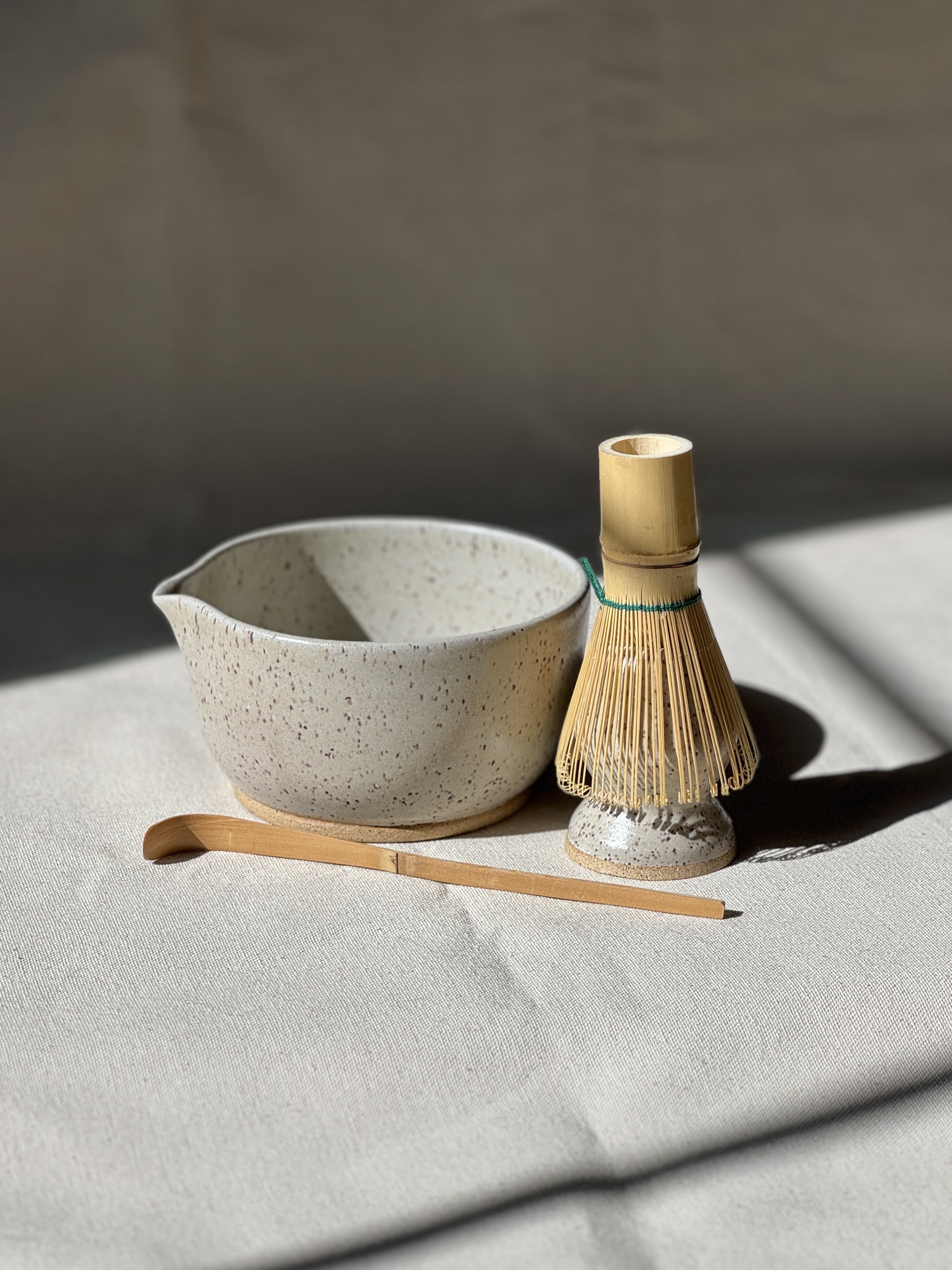 Matcha Sets Categories: All Kitchen Table Spoon Rests Cups Matcha Sets Bowls Dishes Pitchers Decor Trinket Dishes Vases Pedestal Bowls Planters Matcha Sets All Kitchen Table Spoon Rests Cups Matcha Sets Bowls Dishes Pitchers Decor Matcha Bowl & Whisk Holder in Winter White $50.00 Matcha Bowl & Whisk Holder in Satin Black Stripe $50.00 Matcha Bowl & Whisk Holder in Winter White Abstract $50.00 Matcha Bowl & Whisk Holder in Frosted Sage Stripe $50.00 Matcha Bowl & Whisk Holder in Bark Abstract $50.00